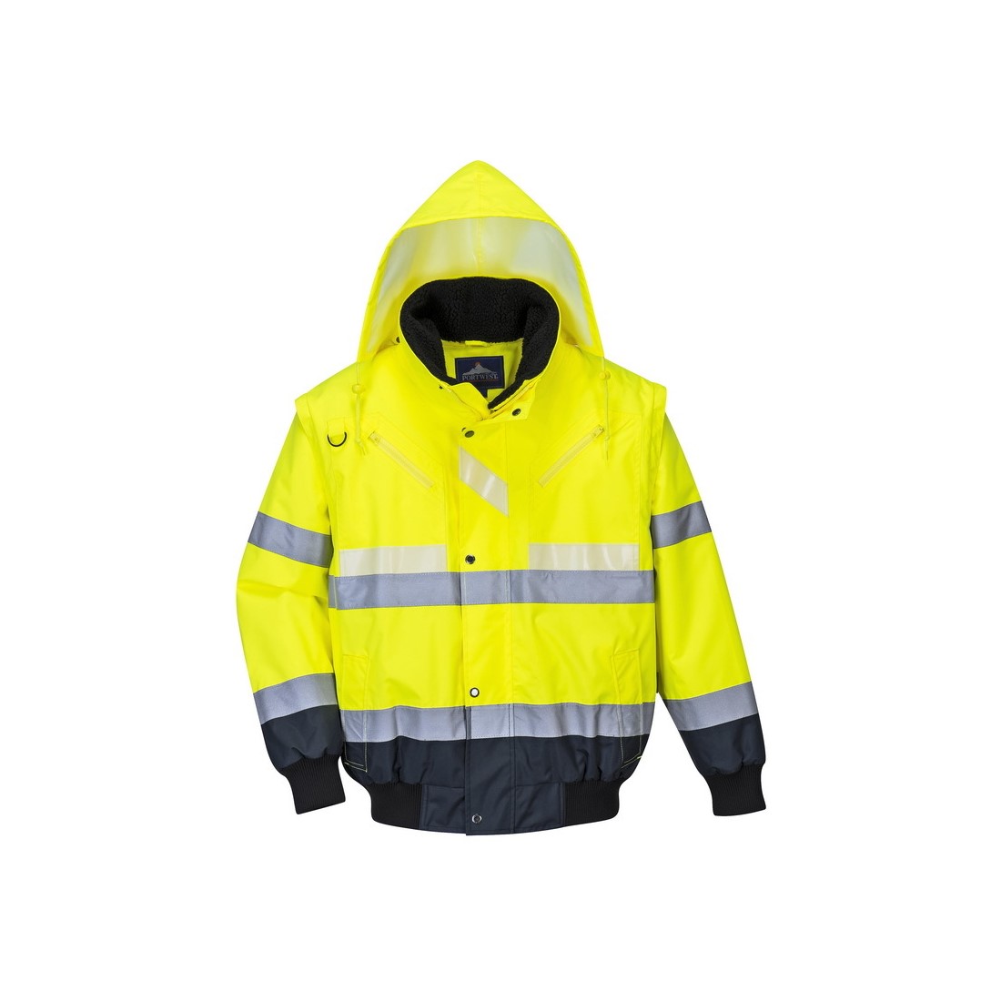 Ez a 3 az 1-ben bomber kabát a Glowtex hármas technológiát alkalmazva maximális láthatóságot biztosít viselőjének. Fluoreszkáló alapanyag mely a nappali láthatóságot biztosítja HiVisTex nagyteljesítményű fényvisszaverő szalag az éjszakai láthatóságért és speciális Glowtex™ foszforeszkáló szalag mely világít a sötétben. A kivehető bélés és gallér ill. a levehető ujjak teszik több funkcióssá ezt a kabátot.,UPF 50+,CE minősítés,Levehető kapucni,Bordázott szegély,Telefontartó zseb,D gyűrű,Kétutas zippzár ,8 zseb,3 az 1-ben kabát,3XL,Vízálló ragasztott varratokkal,Levehető ujjakkal szőrme béléssel és szőrme gallérral,Kiváló Glowtex hármas technológia,Bordás mandzsetta,Texpel Splash Elérhetőség Kritikus? NEM