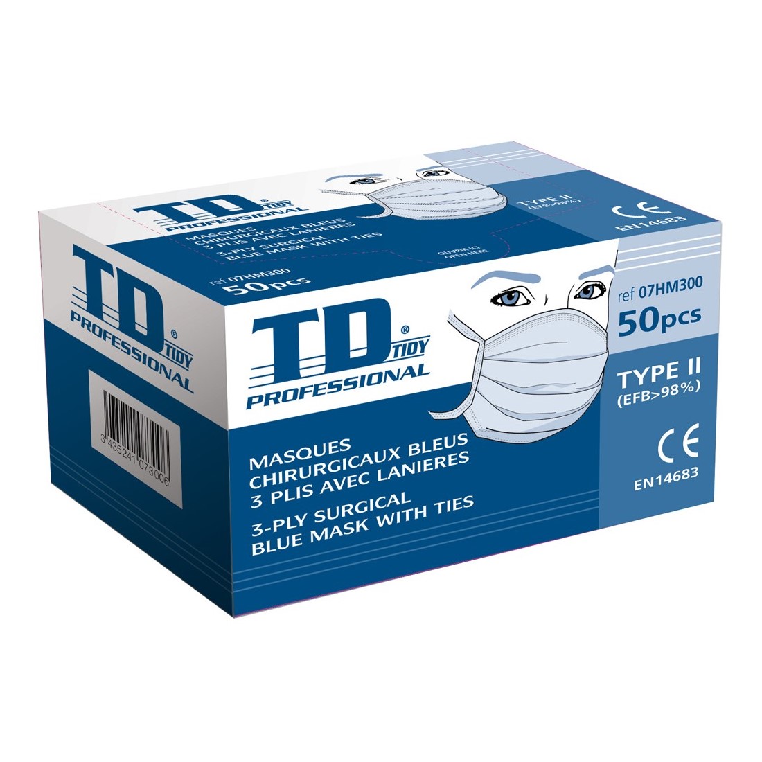 • • kék, háromrétegű higiénikus egészségügyi (műtős) papírmaszk, kötővel