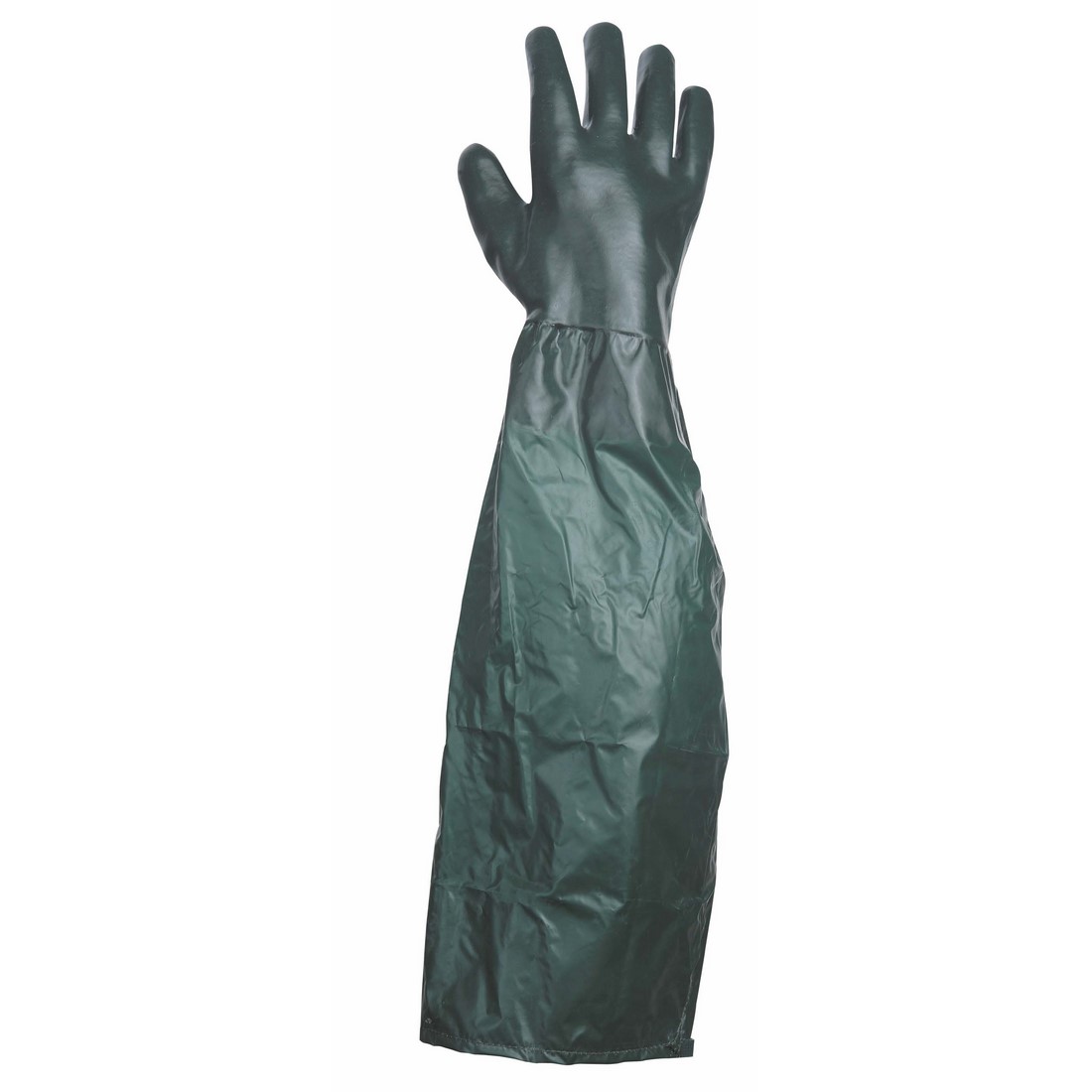 Varrott pamut kesztyű, nitril/PVC-be mártott véd a mechanikus és vegyi veszélyek ellen, 65 cm hosszú alkarvédő, zöld színben, (AS) érdesített. Szezon: egész évben Csomagolás: A03/B82/C55 Márka: TACH
